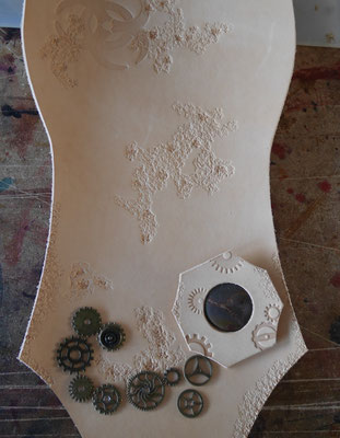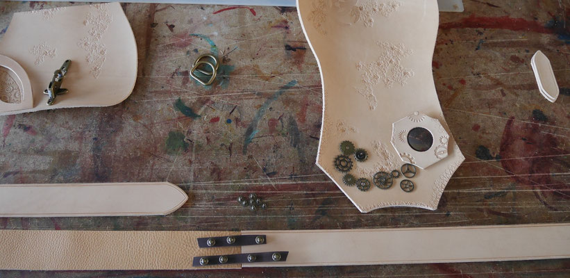 Voici quelques pièces qui composeront un sac dans l'univers steampunk. Si nous avons le temps, cet univers sera bientôt pieux représenté ;)